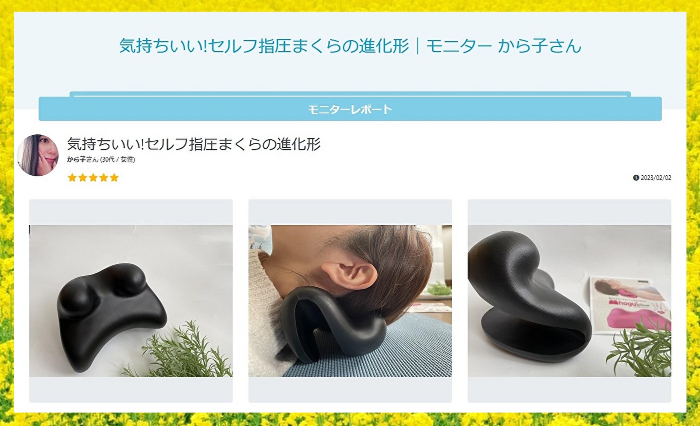 【ほぐほぐピロー】の上に首肩を乗せるとセルフで指圧ができます😊