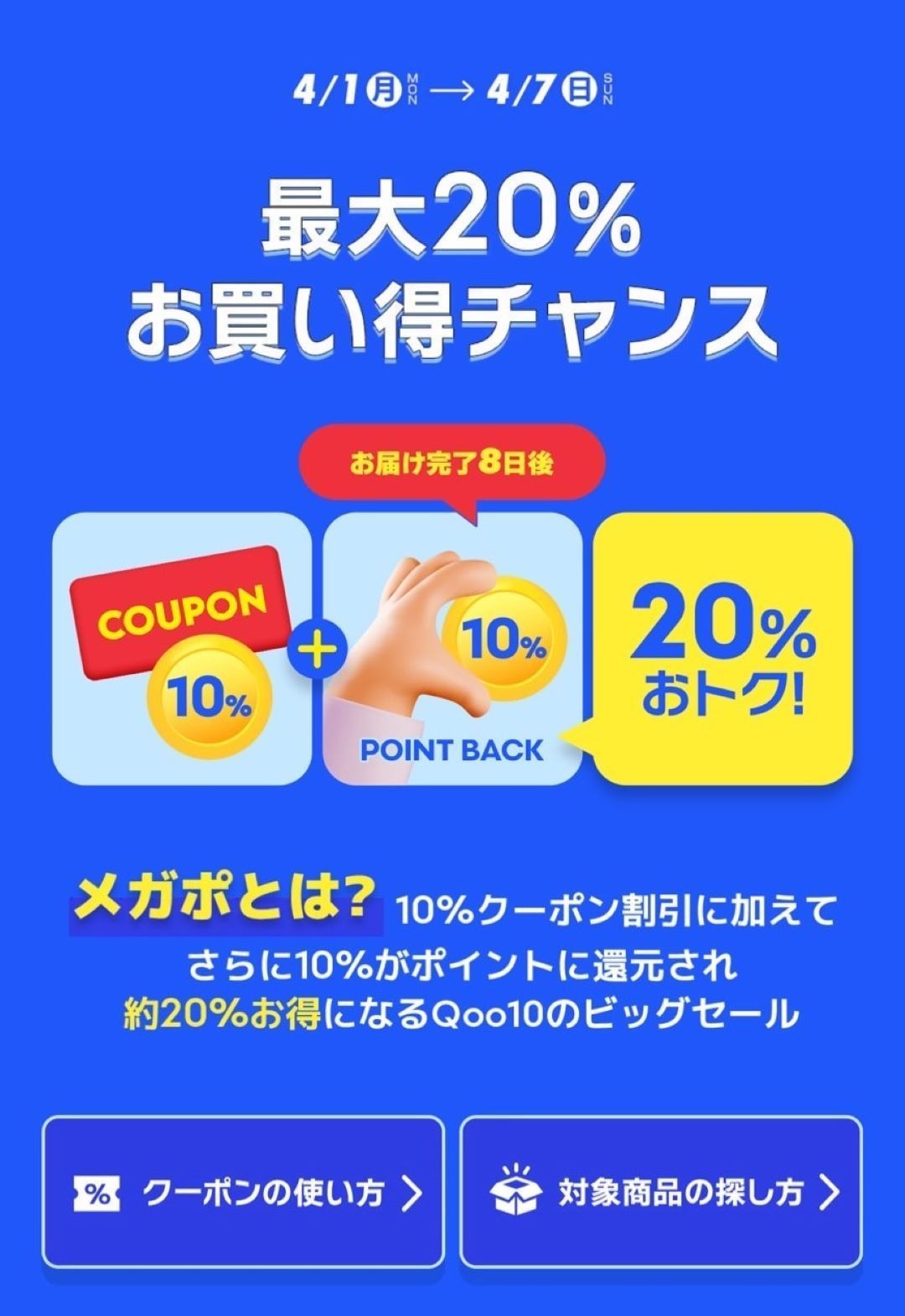 【Qoo10】 最大20%お買い得のチャンスは今だけ👉