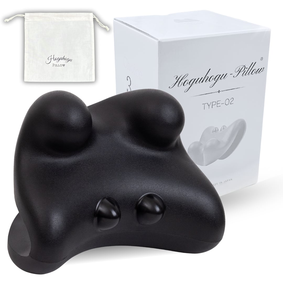 【予約販売中】ほぐほぐピロー Type-02(Black)ネックケアモデル ●本体+巾着カバーポーチ付き